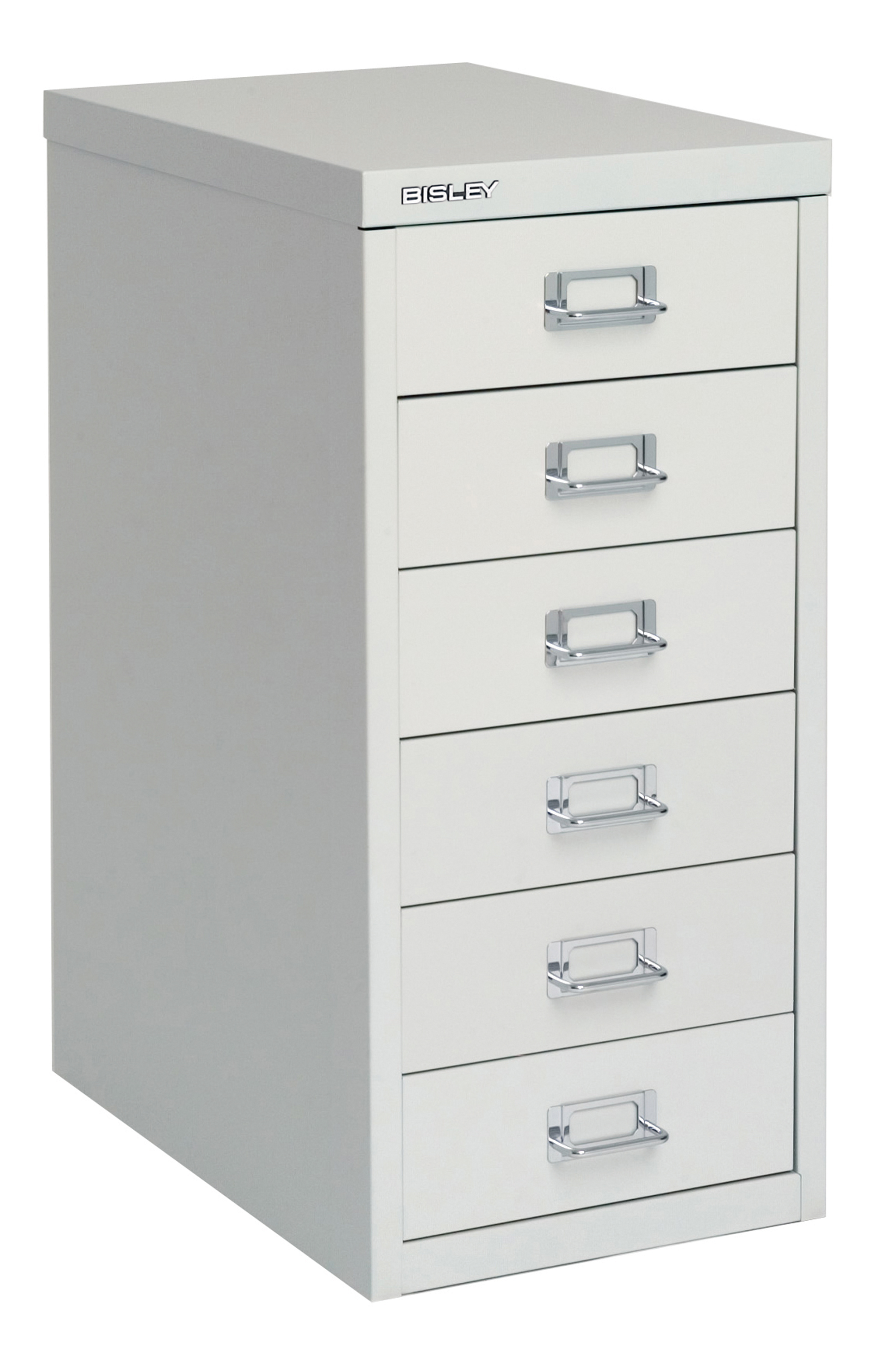 The Bisley 6 Drawer Home 29 Series Steel Multi-Drawer combines timeless design with durable construction and excellent functionality. Each of the six drawers features 100% extension on smooth, resistance -free slides, and the anti-tilt mechanism prevents the opening of a drawer when one is already open, for safe, easy use.