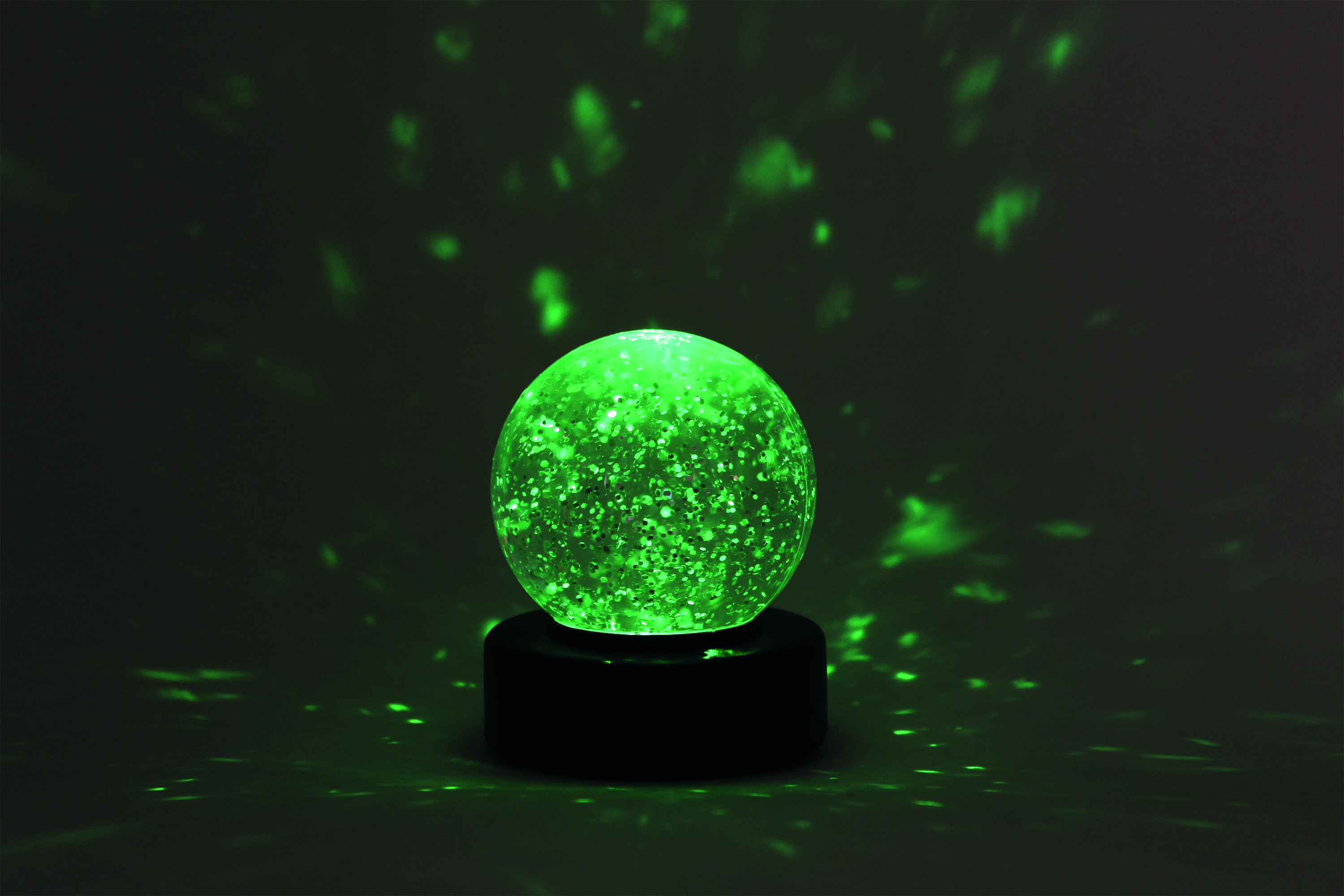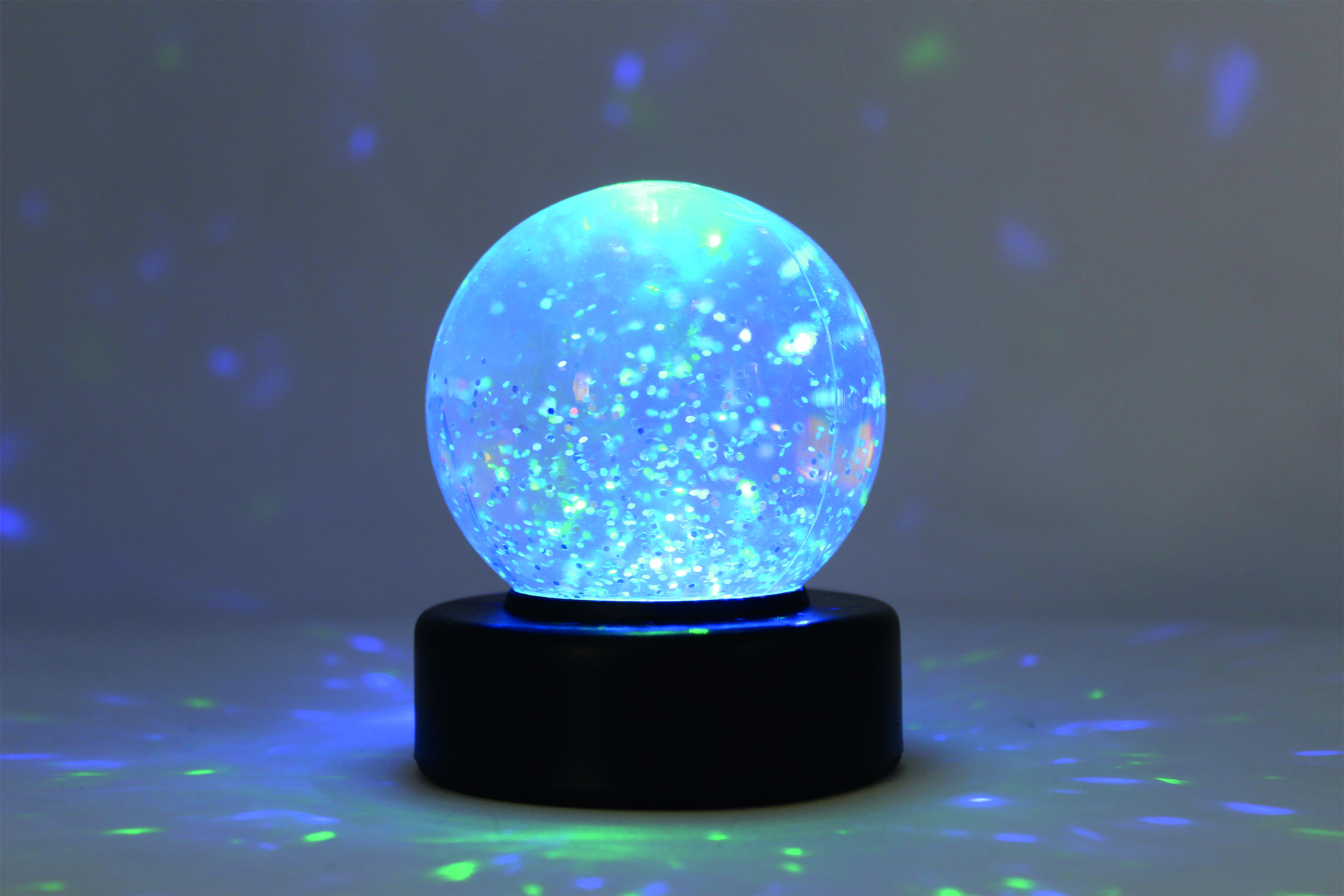 - Glitter swirls when light is shaken
