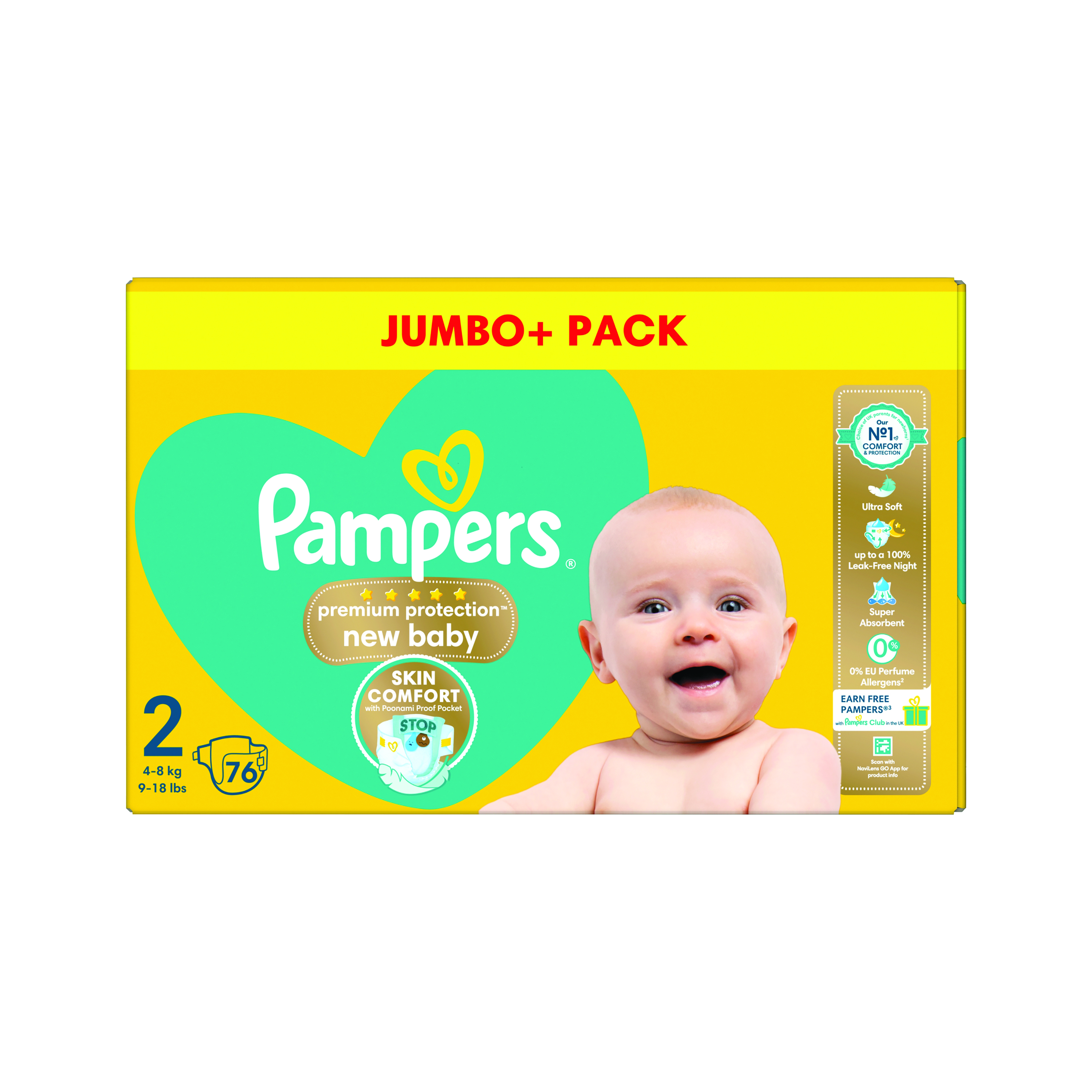 Pampers Premium Protection Nappies New Baby Size 2 Jumbo (Pack of 76) C003523