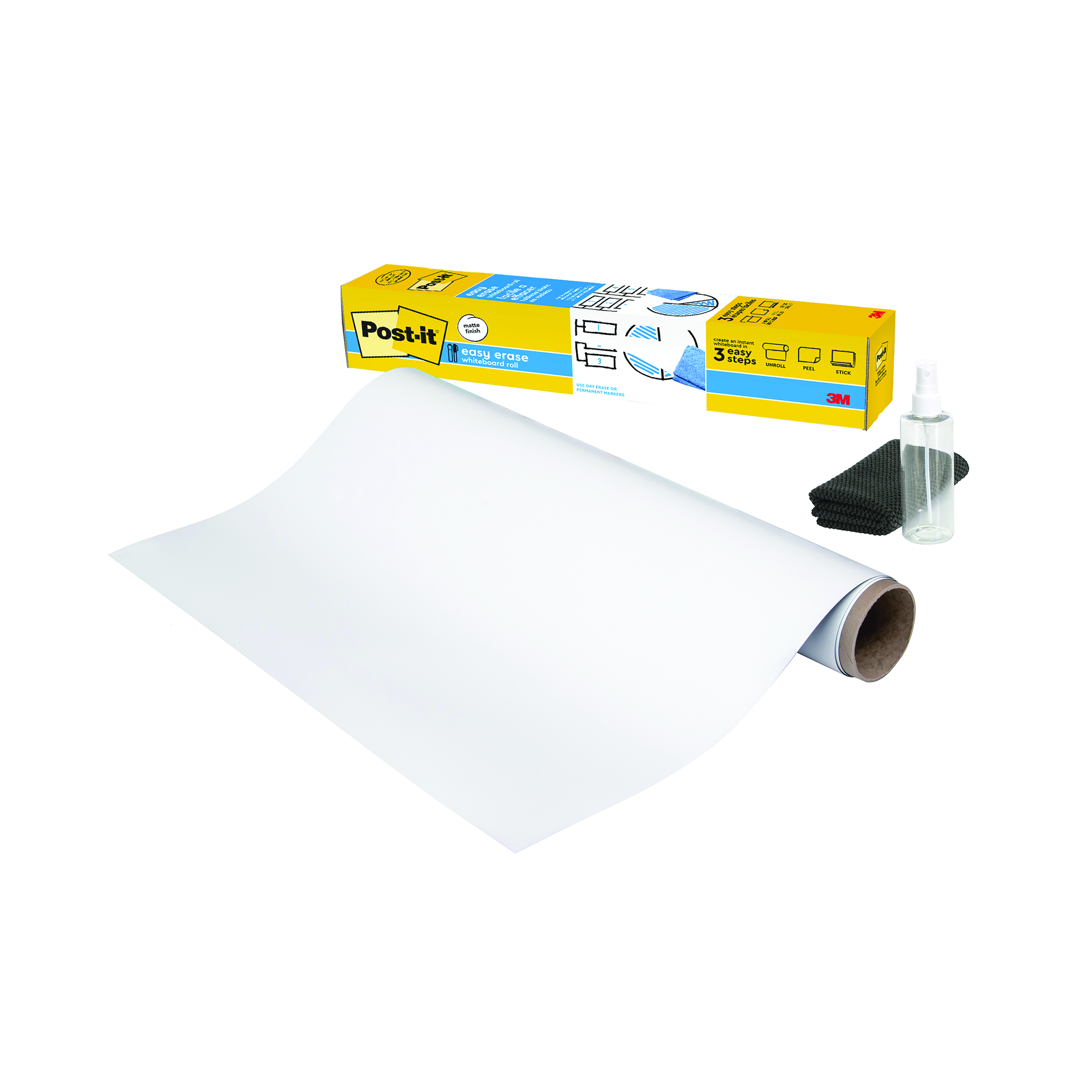 Post-it Easy Erase whiteboard film provides the flexibility to instantly transform work surfaces into a whiteboard, allowing the freedom to write with even a permanent marker without stains. Ideal for collaborative work in the office, classroom and in meetings, the roll can be cut to the size required for a custom whiteboard solution. 1 roll supplied measuring 1219mm x 2420mm.