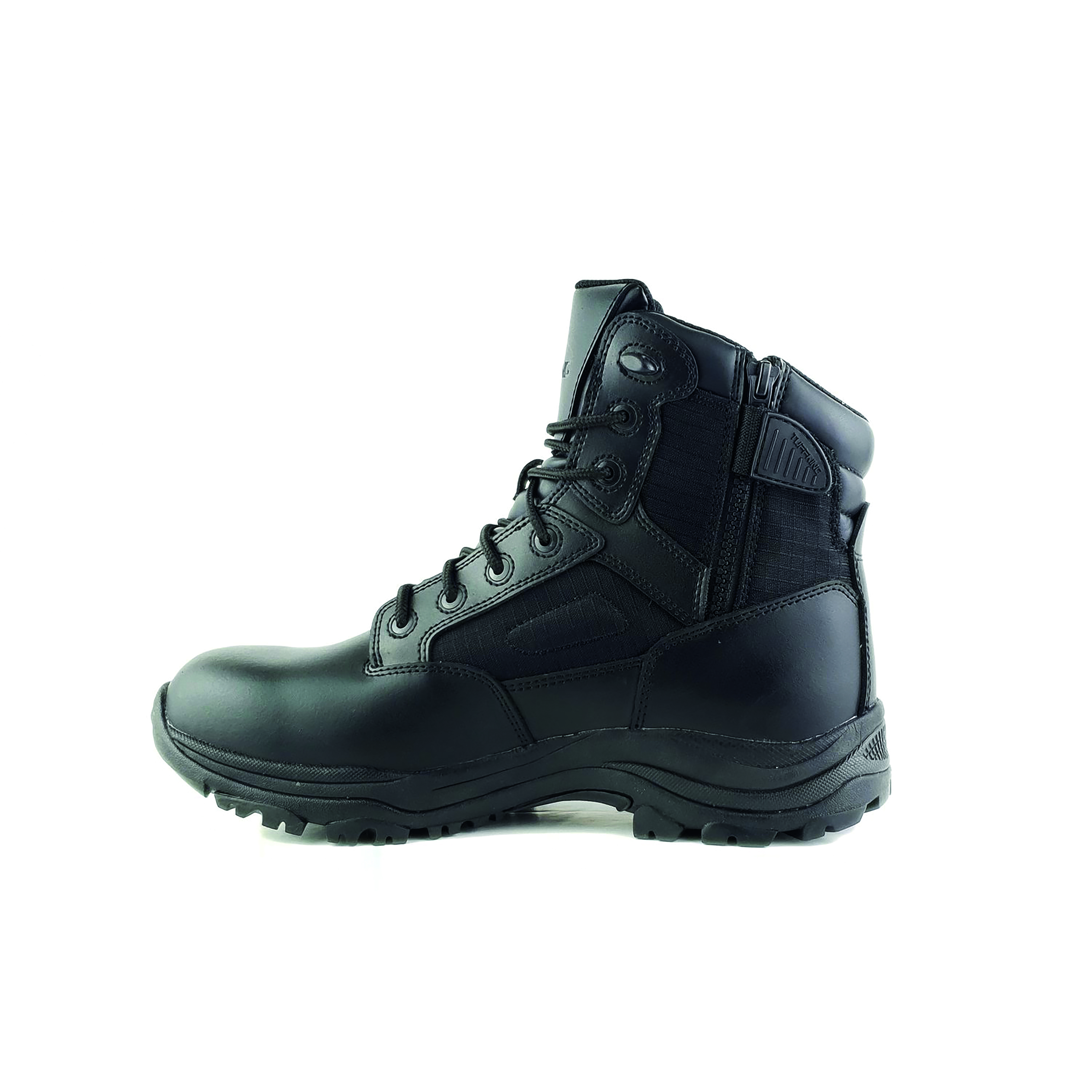 New 6 inch side zip tactical boot made for top tier performance. Featuring an EVA/Rubber outsole that fits like an athletic trainer. Specifically made to adapt to the wearers foot and conquer any terrain. The EVA absorbs impact when running, jumping and moving in high intensity situations. The durable rubber will protect from heat up to 300 Degrees C.